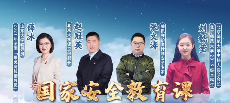 该公开课由北京师范大学2019级本科生刘懿莹主持,由山东大学辅导员薛冰、北京大学保卫部部长赵冠英、腾讯守护者计划安全专家张文涛三位业内专家为大家讲述国家安全。公开课介绍了总体国家安全观,讲述了为什么国家安全与我们息息相关;介绍了新时代国家安全的丰富内涵:维护国家安全,人人有责,更须人人尽责;让同学们充分认识数据安全、生物安全对于国家安全和经济社会发展的重要性,提高大学生防范和应对风险的意识和能力。最后,各位老师指出生活中容易危害国家安全的行为,并给出大学生如何维护国家安全的建议。